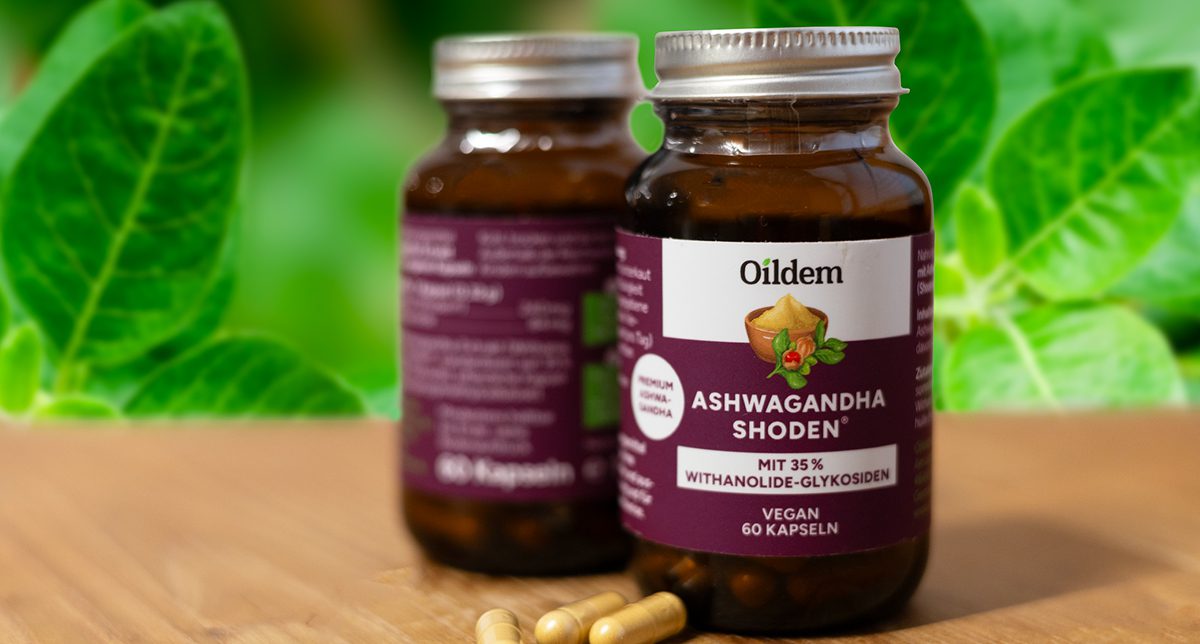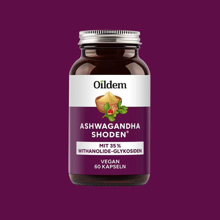 Mit Shoden® kommt dabei ein besonders standardisierter Ashwagandha-Extrakt zum Einsatz – ein Qualitätsmerkmal (mit 35 % Withanolide-Glykosiden), das wir im Layout bewusst sichtbar gemacht haben: klar benannt, gut auffindbar und so platziert, dass es die Kaufentscheidung unterstützt, ohne die Gestaltung zu überladen.